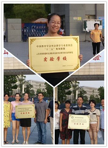 2015年9月17日,清睿国际教育集团(口语100)广东鹤山课题专员魏华专程前往广东鹤山实验中学,代表总课题组为鹤山实验中学颁发 “中国教育学会外语教学专业委员会‘十二五’规划课题实验学校”铜牌并举行挂牌仪式。